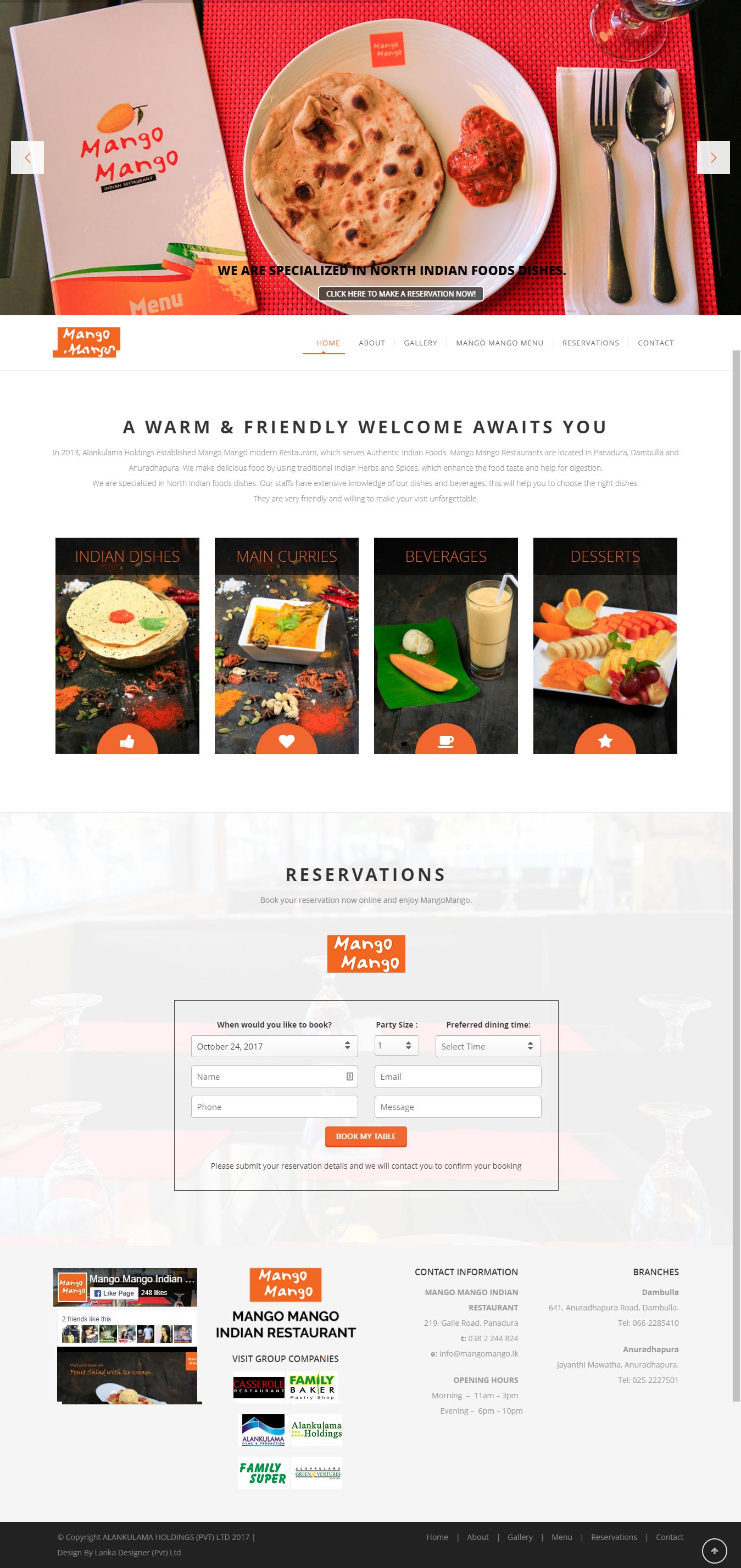 MANGO MANGO INDIAN RESTAURANTS PANADURA, DAMBULLA & ANURADHAPURA